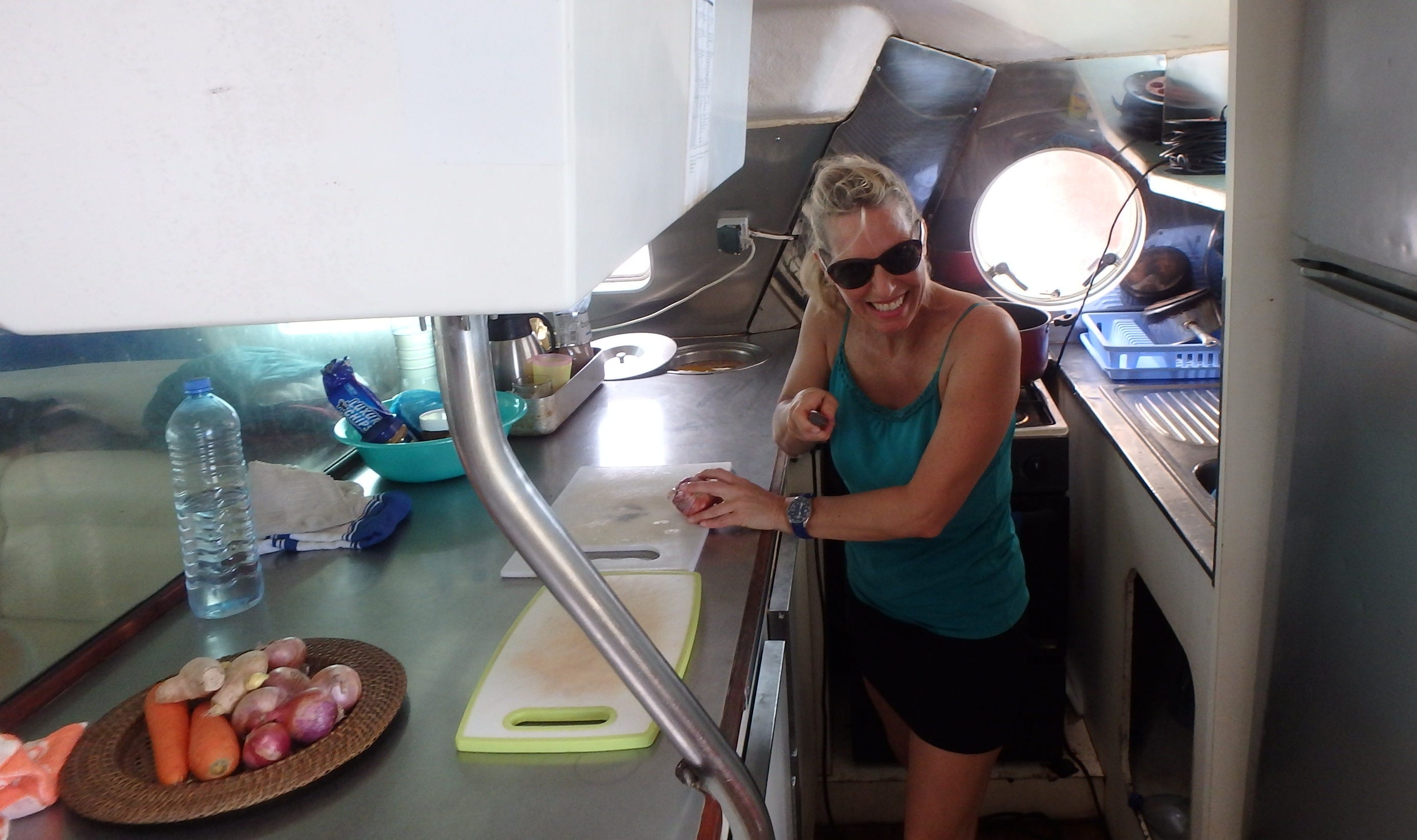 Sadly, my culinary skills are no better than my sailing skills, so I fell even further down the pecking order to sous chef and dishwasher. I didn’t really mind. At this point, it was obvious who was valuable and who was just along for the ride.
