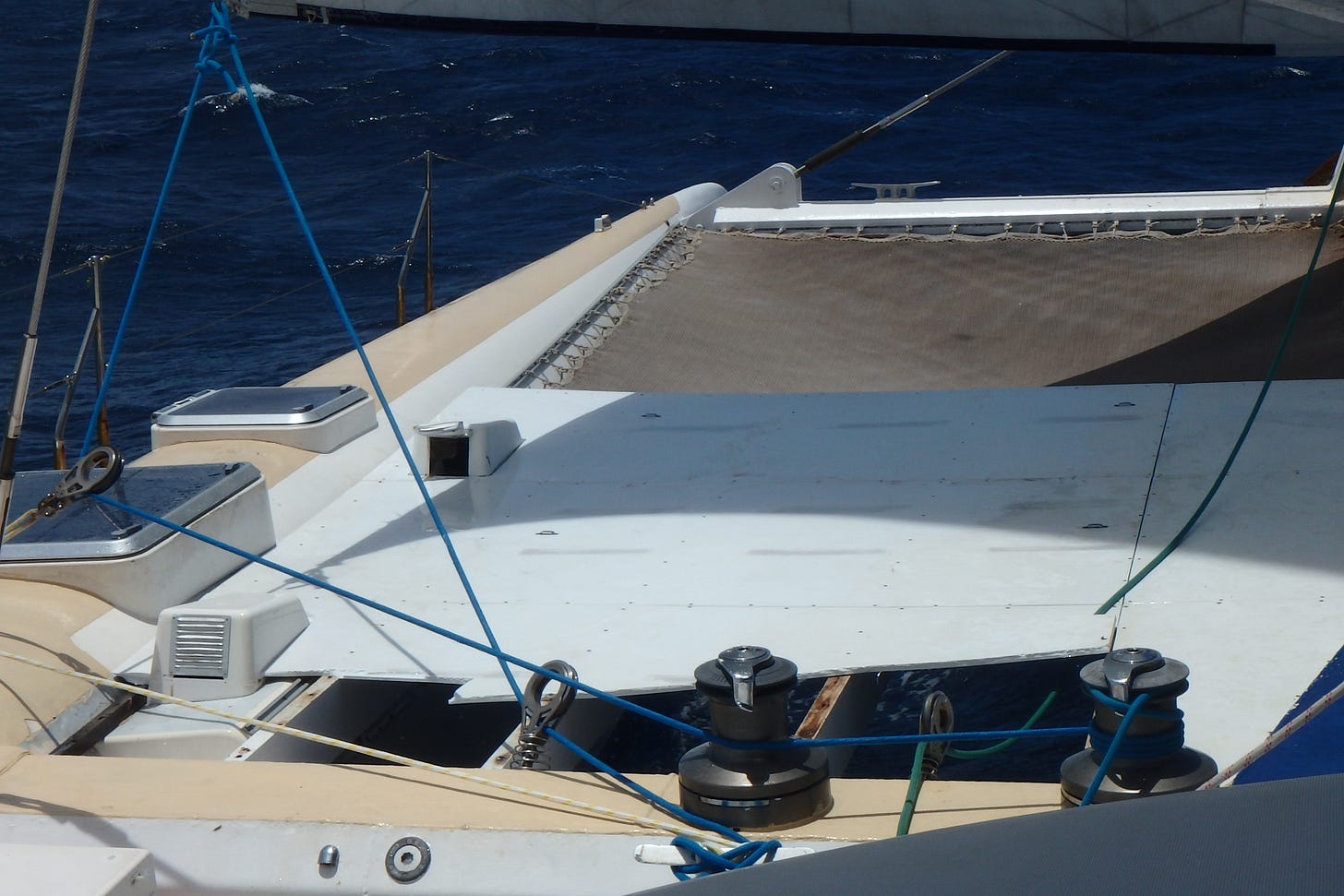 Also, without a generator, we couldn’t use any of the electrical instruments on board, including the ship’s lights, the water filter, the water pump (important because of that constant influx of water in the one hull), and the INS system.