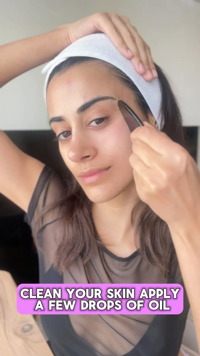 I also do “face yoga” a couple of times a week, introduced to me by my friend and yoga instructor, Açelya. I keep it in a glass with a drop of tea tree oil in the refrigerator so it’s nice and cool on my skin.